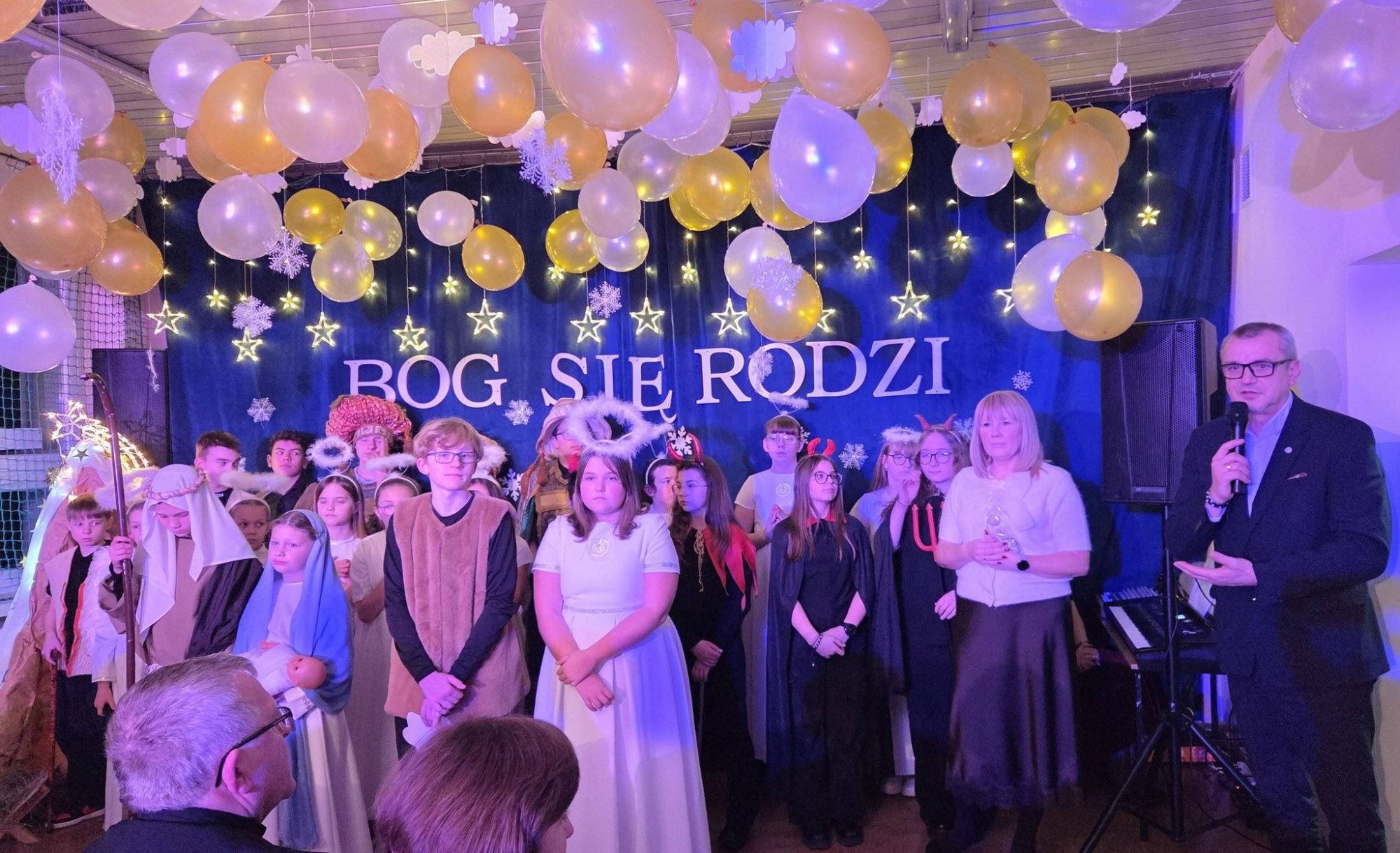 18 grudnia w Szkole Podstawowej nr 2 odbyły się wyjątkowe jasełka, przygotowane z myślą o całej społeczności szkolnej oraz lokalnej. Wydarzenie zgromadziło uczniów, nauczycieli, rodziców oraz licznych zaproszonych gości, tworząc atmosferę pełną wzruszenia, radości i świątecznej refleksji. Centralnym punktem przedstawienia była scena Narodzenia Jezusa, która w poruszający i symboliczny sposób ukazała istotę Bożego Narodzenia. Młodzi aktorzy z ogromnym zaangażowaniem wcielili się w swoje role, oddając klimat betlejemskiej nocy. Szczególne emocje wzbudził śpiew aniołów, który wprowadził zgromadzonych w podniosły nastrój i przypomniał o przesłaniu miłości, pokoju i nadziei. Ważnym elementem wydarzenia była także inicjatywa Samorządu Uczniowskiego, który przygotował świąteczny kiermasz. Goście mogli zakupić ręcznie robione ozdoby oraz pachnące pierniczki, wykonane z wielkim sercem i starannością przez uczniów. Zespół ds. Promocji przygotował kawiarenkę, w której na gości czekała aromatyczna kawa, pyszna zimowa herbatka oraz domowe wypieki, sprzyjające rozmowom i wspólnemu świętowaniu. Podczas uroczystości głos zabrała pani dyrektor Anna Gaszczyk, która skierowała do zgromadzonych pełne ciepła, radości i miłości życzenia świąteczne. W swoim wystąpieniu podkreśliła, jak ważny jest czas Świąt Bożego Narodzenia – czas refleksji, bliskości, życzliwości i wzajemnego wsparcia. Swoje przemówienie wygłosił również pan Mirosław Wieszołek - Burmistrz Ozimka, który podziękował uczniom i nauczycielom za przygotowanie pięknych jasełek oraz złożył wszystkim obecnym serdeczne życzenia świąteczne. Głos zabrała także pani Leonarda Płoszaj - Wicestarosta Opolski, podkreślając znaczenie kultywowania tradycji bożonarodzeniowych oraz wspólnotowego charakteru wydarzenia. Wśród zaproszonych gości obecnych na uroczystości znaleźli się również: ks. proboszcz Marian Demarczyk, pan Zygmunt Olbryt – Przewodniczący Rady Miejskiej, pan Antoni Gryc – Radny Powiatu Opolskiego, Pani Ewa Kotyrba - Dyrektor Gminnego Zakładu Oświaty w Ozimku, pan Grzegorz Filipek – Sołtys Nowej Schodni, pani Julita Widera – Sołtys Schodni, pani Marianna Rataj – przedstawicielka DFK Nowa Schodnia, oraz pani Karina Maj – Przewodnicząca Rady Rodziców. Ich obecność podkreśliła rangę wydarzenia oraz jego znaczenie dla całej społeczności lokalnej. Składamy serdeczne podziękowania Restauracji Marcus za okazane wsparcie i życzliwość, które przyczyniły się do stworzenia ciepłej, świątecznej atmosfery podczas tego wyjątkowego dnia. Jasełka w Szkole Podstawowej nr 2 były nie tylko artystycznym wydarzeniem, ale także pięknym świadectwem jedności społeczności szkolnej i lokalnej. Stały się okazją do zatrzymania się w przedświątecznym pośpiechu i wspólnego przeżywania radości płynącej z nadchodzących Świąt Bożego Narodzenia.