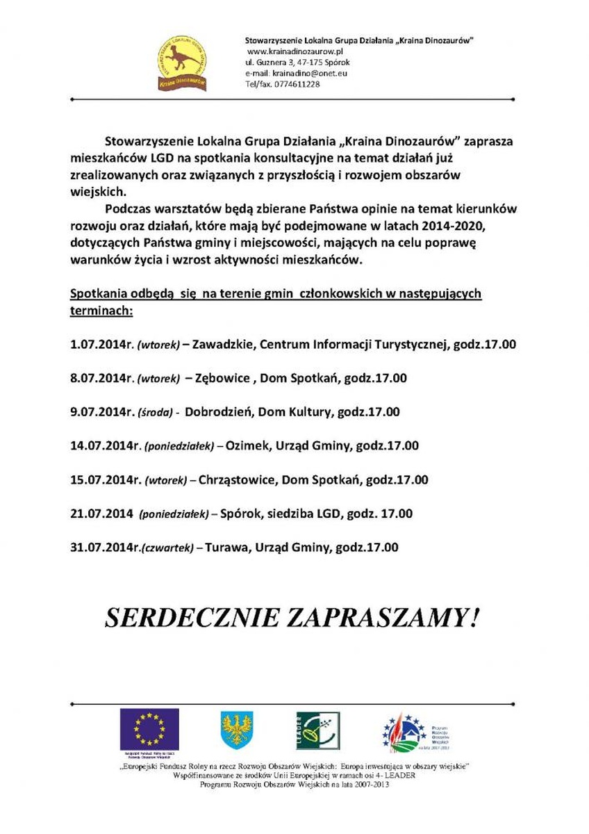 21.07.2014 (poniedziałek) – Spórok, siedziba LGD, godz. 17.00