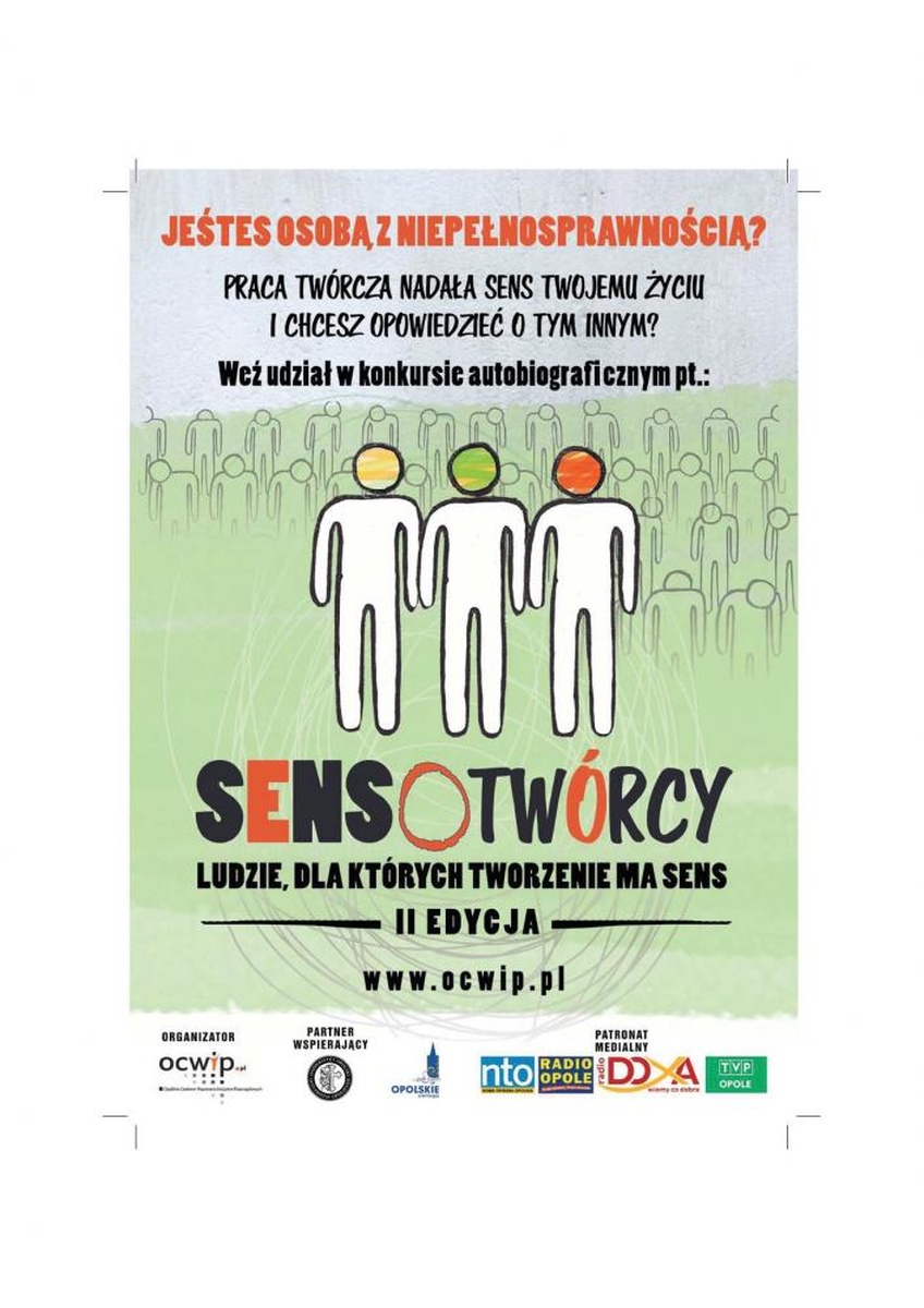 Opolskie Centrum Wspierania Inicjatyw Pozarządowych zaprasza osoby z niepełnosprawnością do uczestnictwa w konkursie autobiograficznym „Sensotwórcy – ludzie, dla których tworzenie ma sens – II edycja”