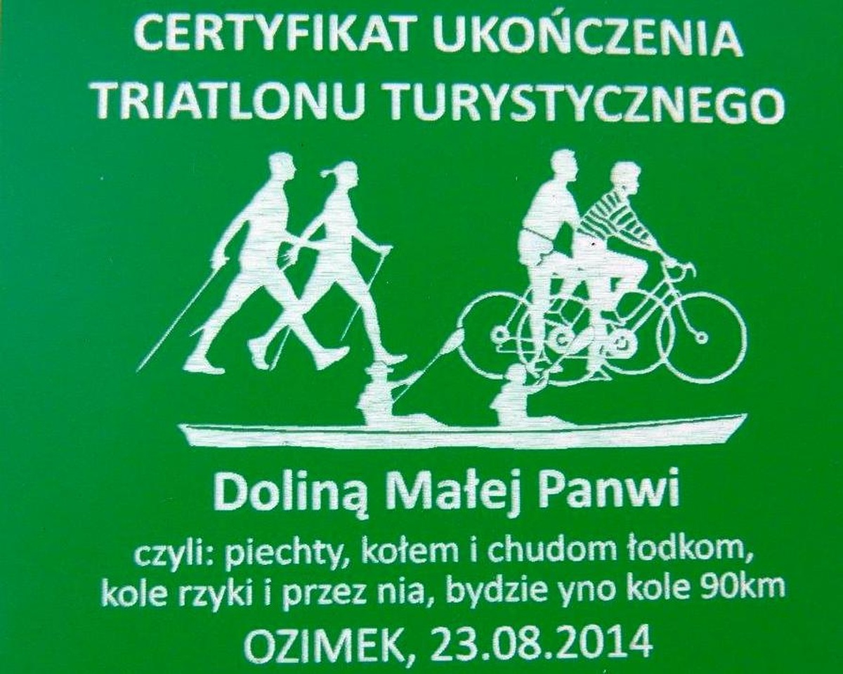 Piechty, kołem i chudom łodkom, kole rzyki i przez nia, bedzie yno kole 90 km, czyli II Triatlon Turystyczny Doliną Małej Panwi odbył się 23 sierpnia, na trasie od źródeł rzeki Mała Panew w okolicach Rzeniszowa (woj. śląskie) do przystani kajakowej na Wyspie Rehdanza w Ozimku. Jego organizatorem było Stowarzyszenie Dolina Małej Panwi w Ozimku, a do udziału w rywalizacji stanęło 17 dwuosobowych drużyn.
