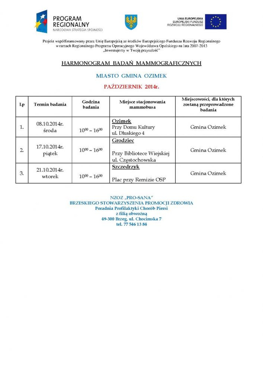 Zapraszamy wszystkie Panie w wieku 50 – 69 lat , które przez ostatnie 2 lata nie miały wykonanej mammografii. Na badanie należy zgłosić się z dowodem osobistym oraz zdjęciami z ostatniego badania.