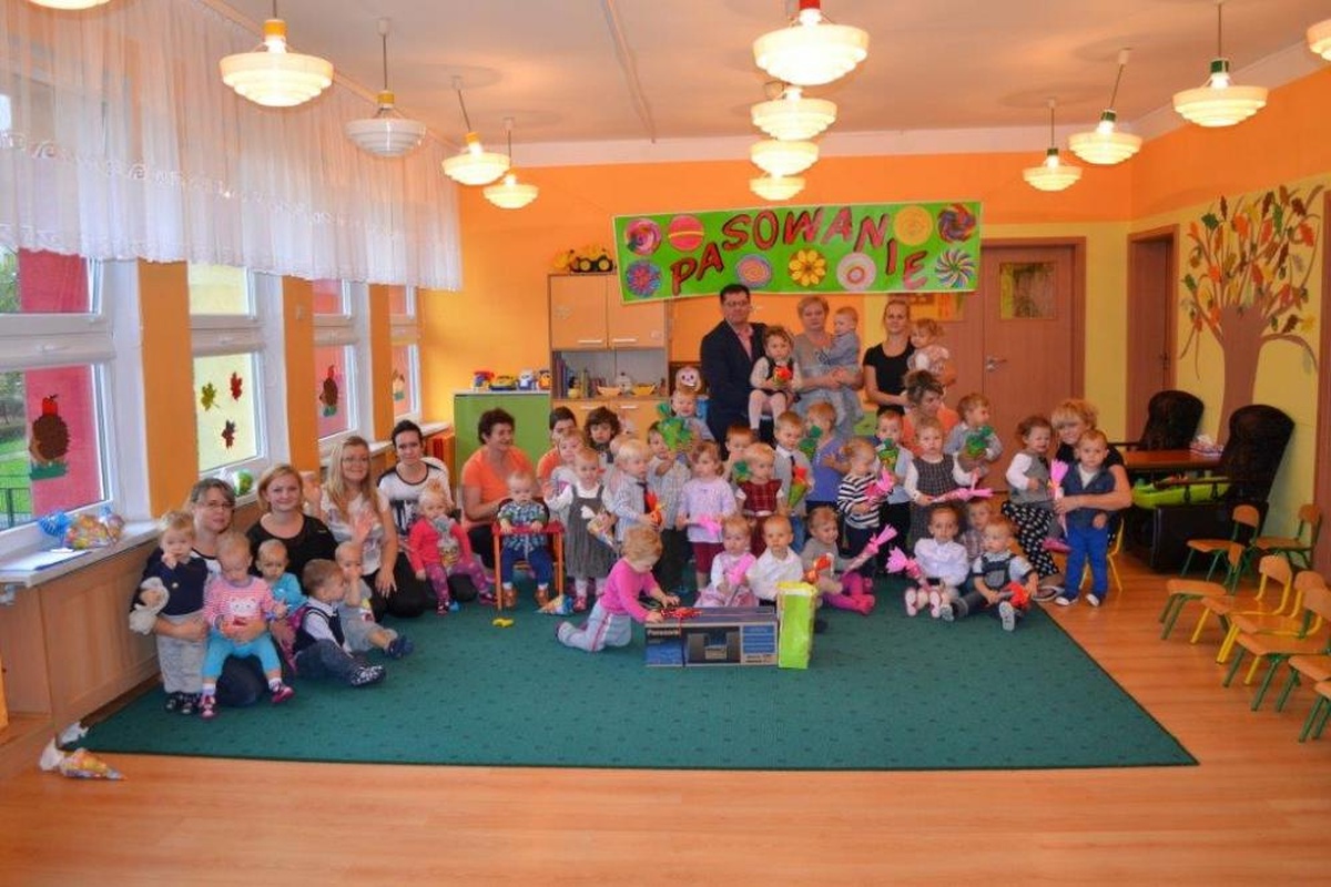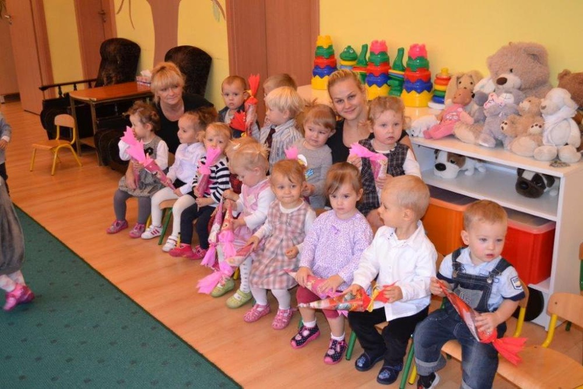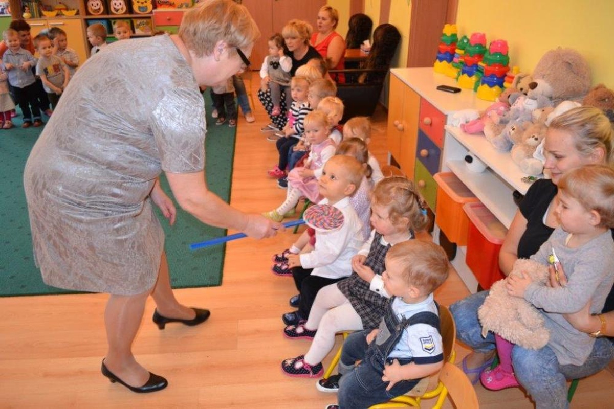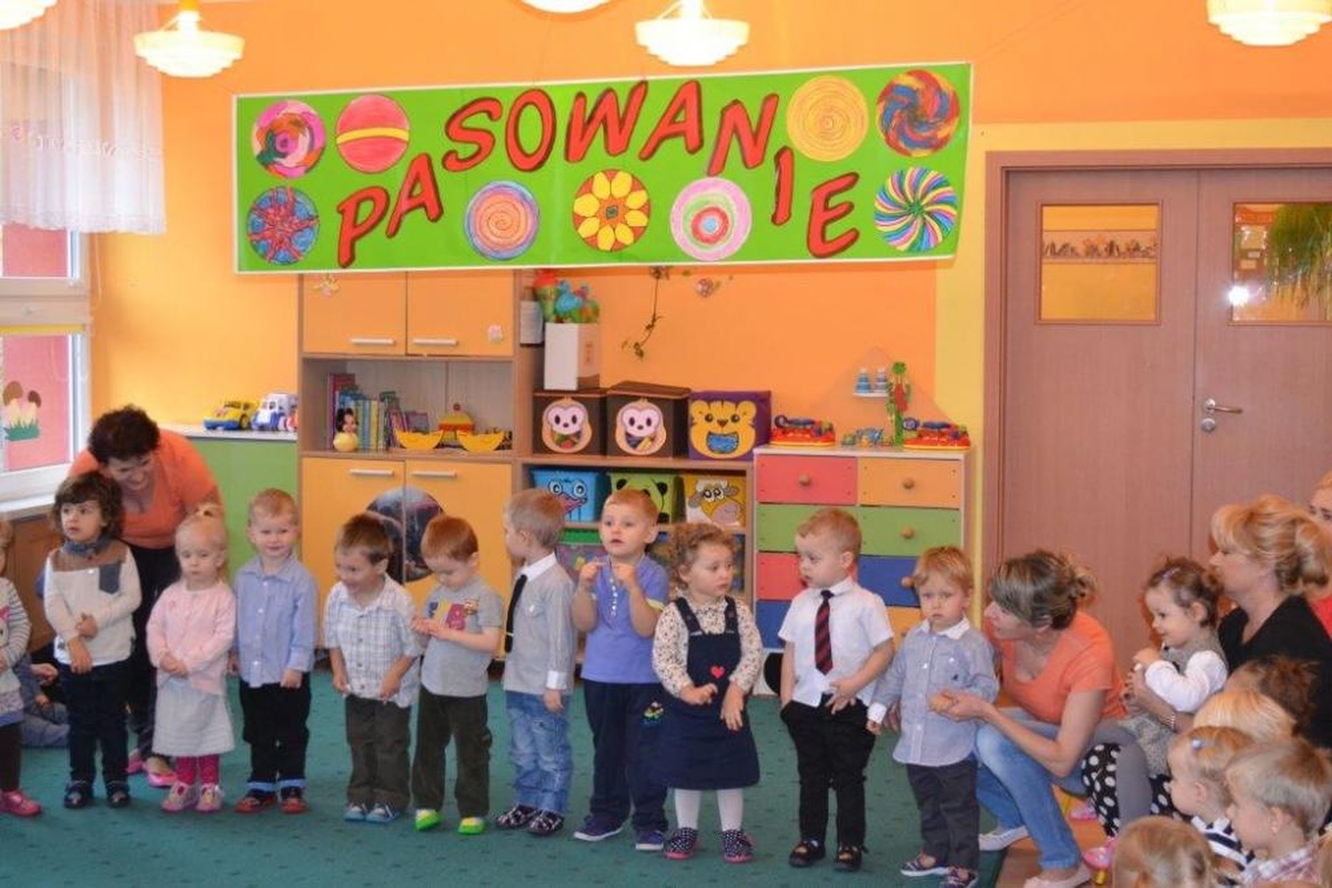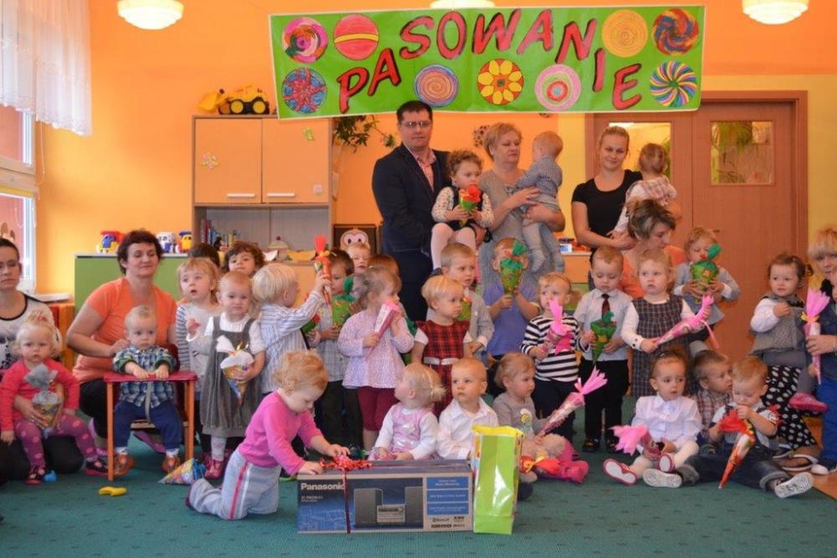 Dnia 23 października, po raz pierwszy w naszym żłobku, odbyło się uroczyste " pasowanie na żłobkowicza". Przez wiele dni maluchy pilnie uczyły się wierszyków i piosenek, cierpliwie znosząc próby części artystycznej. Był to pierwszy, tak ważny debiut dzieci ze wszystkich grup wiekowych, zakończony sukcesem. Za starania oraz wysiłek maluchy zostały nagrodzone gromkimi brawami. Punktem kulminacyjnym uroczystości był akt pasowania "magicznym lizakiem" dokonany przez samą Panią Dyrektor. W obecności opiekunek oraz zaproszonych gości m. in. Pana Burmistrza Marka Korniaka i przedstawicieli Rady Rodziców działających prężnie w Żłobku, dzieci składały uroczystą przysięgę: