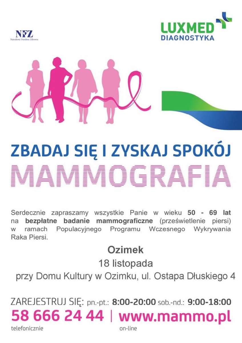 Zapraszamy na badania mammograficzne