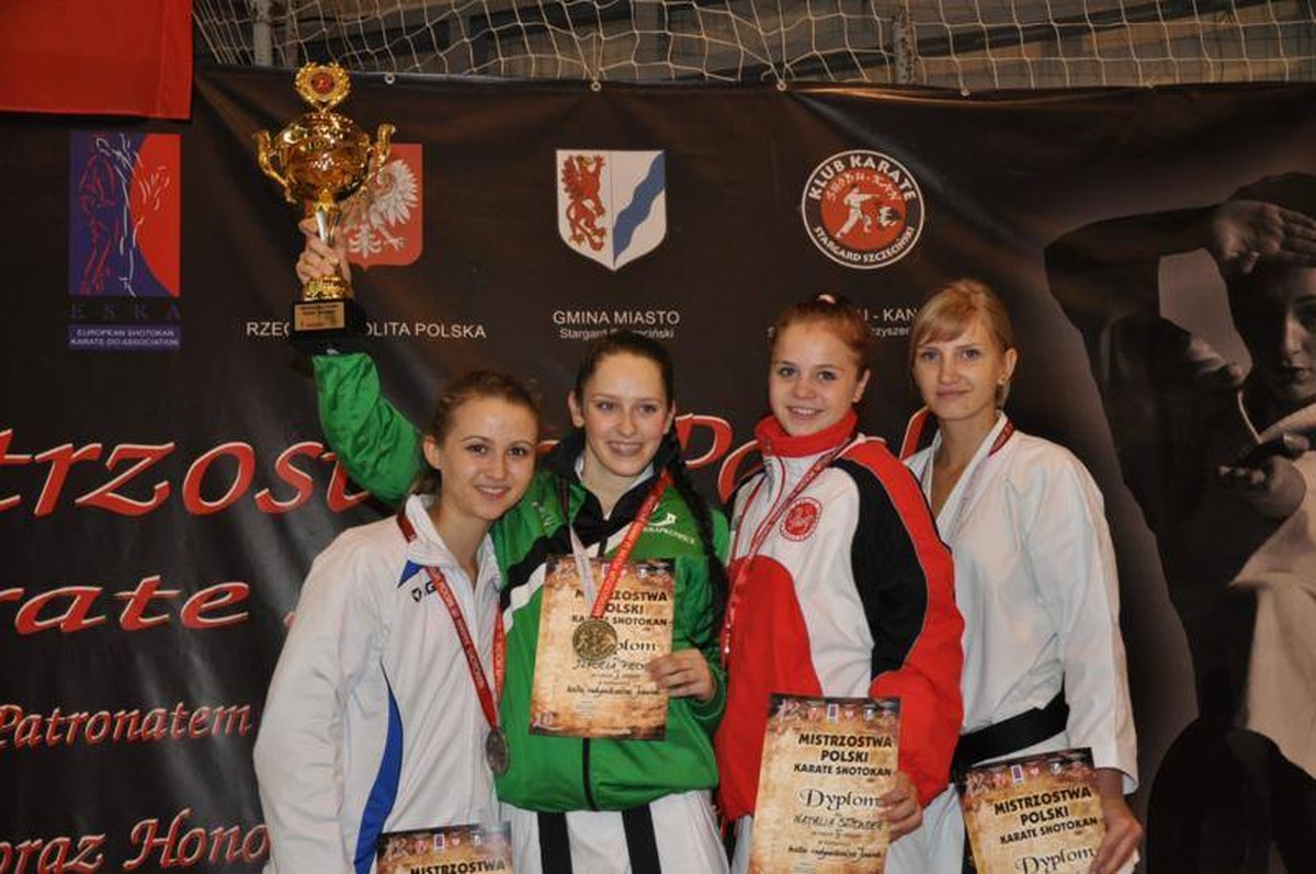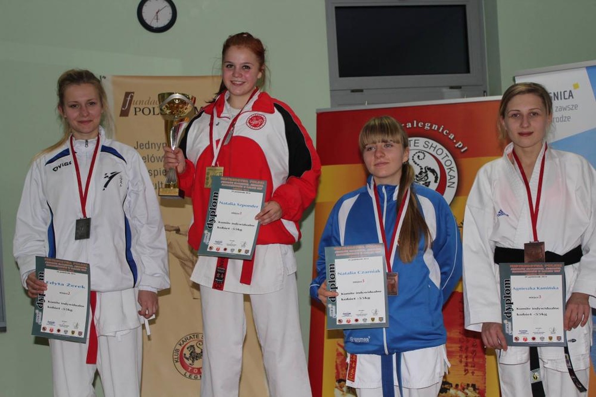 Tydzień później 25 października odbyły się Mistrzostwa Polski Karate WKF w Legnicy. Organizatorem Mistrzostw był Klub Karate Shotokan „Tora” z Legnicy. Uczestniczyło w nich 310 zawodników z 48 klubów. Nasza zawodniczka wypadła rewelacyjnie stając na podium trzy razy. W konkurencji kumite ind. kobiet U-21 -55kg Natalia została Mistrzynią Polski, drugi medal także złoty zajęła drużynowo z koleżankami z klubu w konkurencji kata kobiet U-21. W podobnym składzie dziewczyny zajęły 2 miejsce w kumite drużynowym kobiet.