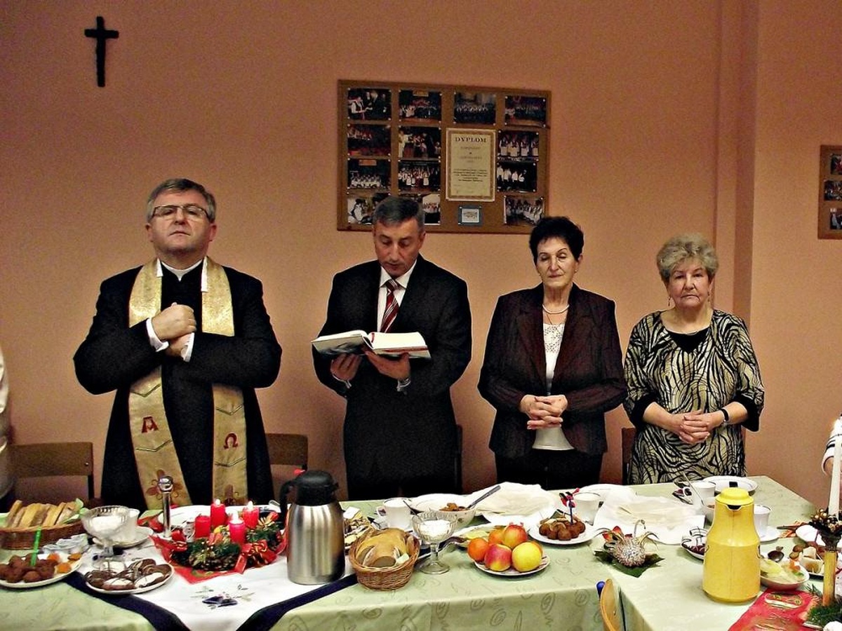 Burmistrz odczytał fragment ewangelii, a proboszcz zgodnie z obyczajem pobłogosławił opłatki, po czym przystąpiono do wzajemnego składania życzeń świąteczno-noworocznych. Przygotowano również tradycyjne potrawy wigilijne i zaproszono wszystkich do wspólnej uczty.