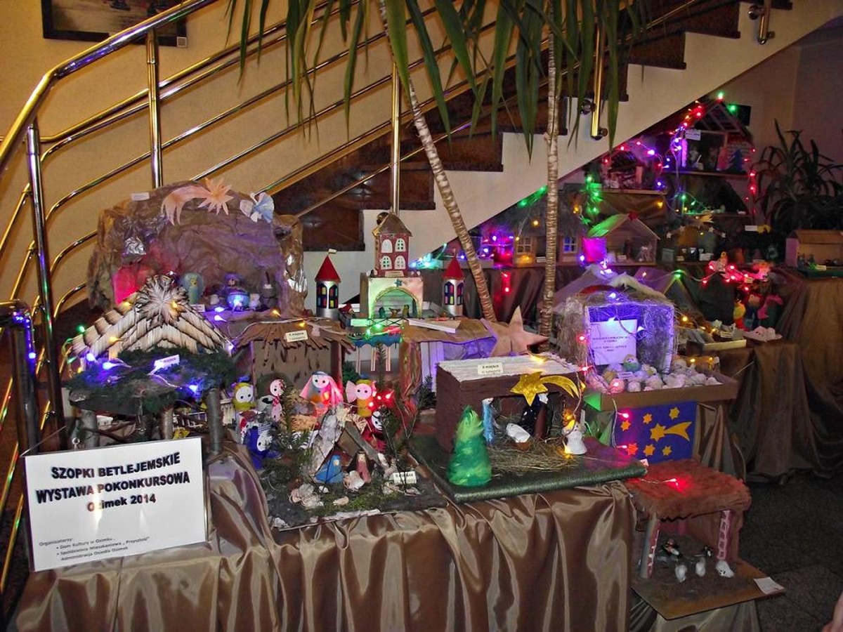 Przepiękne szopki betlejemskie i ozdoby choinkowe, jakie zostały wykonane w ramach konkursów organizowanych przez Dom Kultury w Ozimku i Zarząd OSM Przyszłość Administrację Osiedla Ozimek można podziwiać w UGiM w Ozimku.