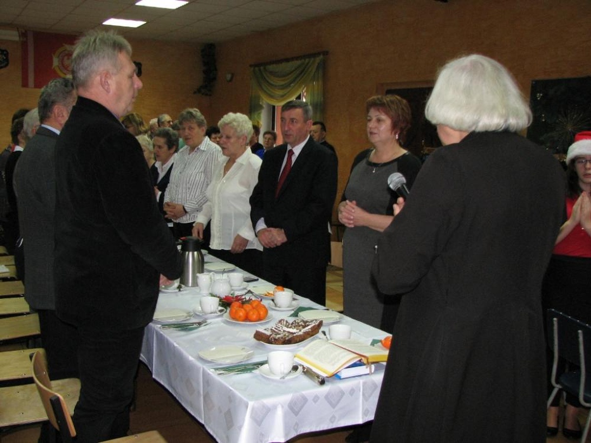 Wesołych Świąt Bożego Narodzenia i wiele zdrowia w nadchodzącym 2015 roku życzyli wszystkim uczestnikom spotkania: burmistrz Ozimka Jan Labus, sołtys Szczedrzyka, radny Joachim Wiesbach oraz radny powiatowy Antoni Gryc. Wspólnie spożyto wigilijny posiłek, a czas umilał śpiewem kolęd i świątecznych piosenek dziecięcy zespół wokalny BIS z Koła DFK w Leśnicy. Spotkanie zorganizowano przy finansowym wsparciu Ośrodka Integracji i Pomocy Społecznej w Ozimku, któremu organizatorzy składają serdeczne podziękowania. Dla seniorów powyżej 80. roku życia parafialny zespół Caritas przygotował świąteczne paczki, a dla obłożnie chorych parafian oraz niepełnosprawnych dzieci ufundowano zapomogi finansowe.