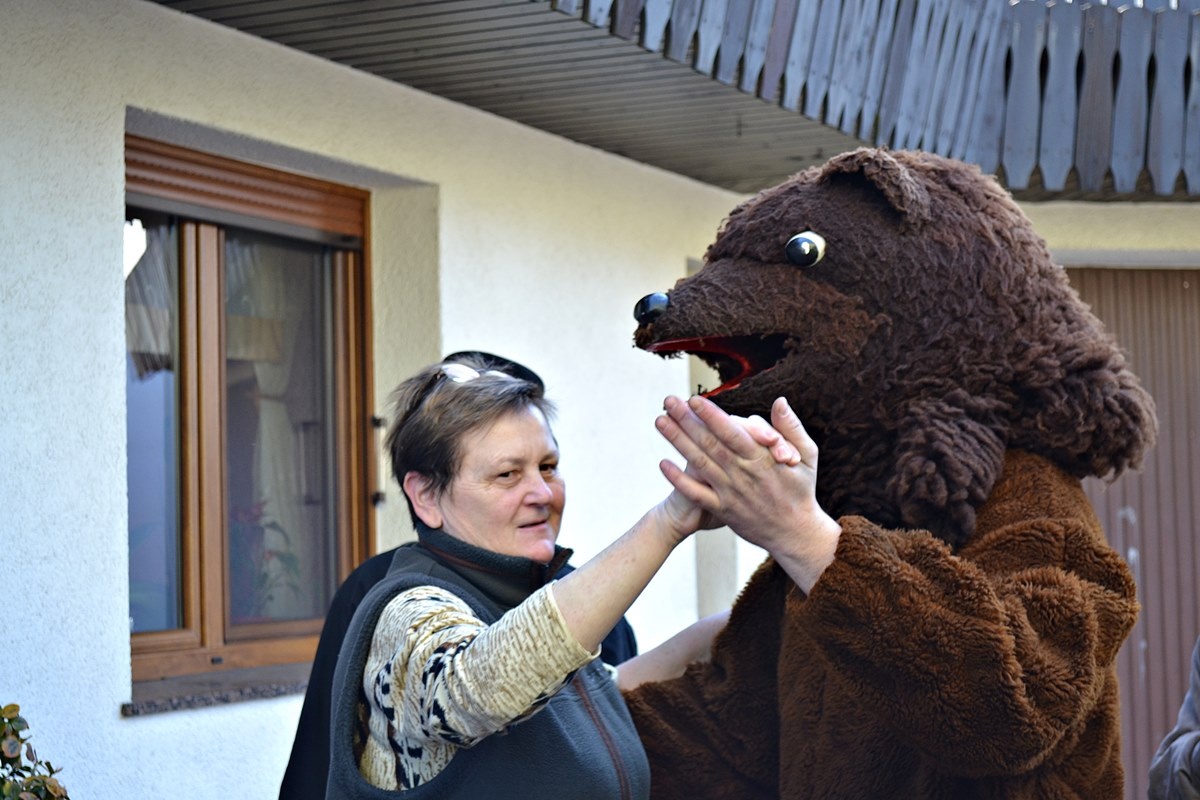 Myśliwy tradycyjnie prowadził niedźwiedzia symbolizującego zło na łańcuchu. „Ber” zatańczył w każdym domostwie, w którym został przyjęty z gospodynią domu, co wróży szczęściem na cały rok. Lekarze pytali o zdrowie oraz przeprowadzali gratisowe badania, proboszcz zaś rozmawiał z domownikami, udzielając im rozgrzeszenia. Kierowcom wręczano mandaty za nieistniejące przewinienia, które w rzeczywistości były zaproszeniami na sąd niedźwiedzia oraz zabawę. A cyganka kradła przedmioty, które właściciele musieli odzyskać za drobną datkom.