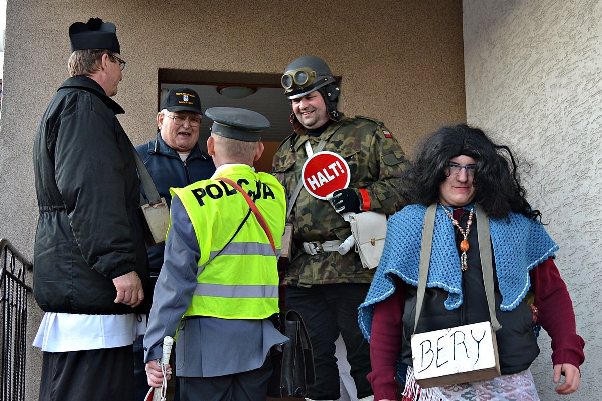 Barwny orszak, składający się z 14 przebierańców rozpoczął od 8:00 rano swoją wędrówkę zaczynając od Nowej Schodni. Wśród postaci był naturalnie niedźwiedź oraz min. policjant, ksiądz, fotograf cyganka i lekarz.