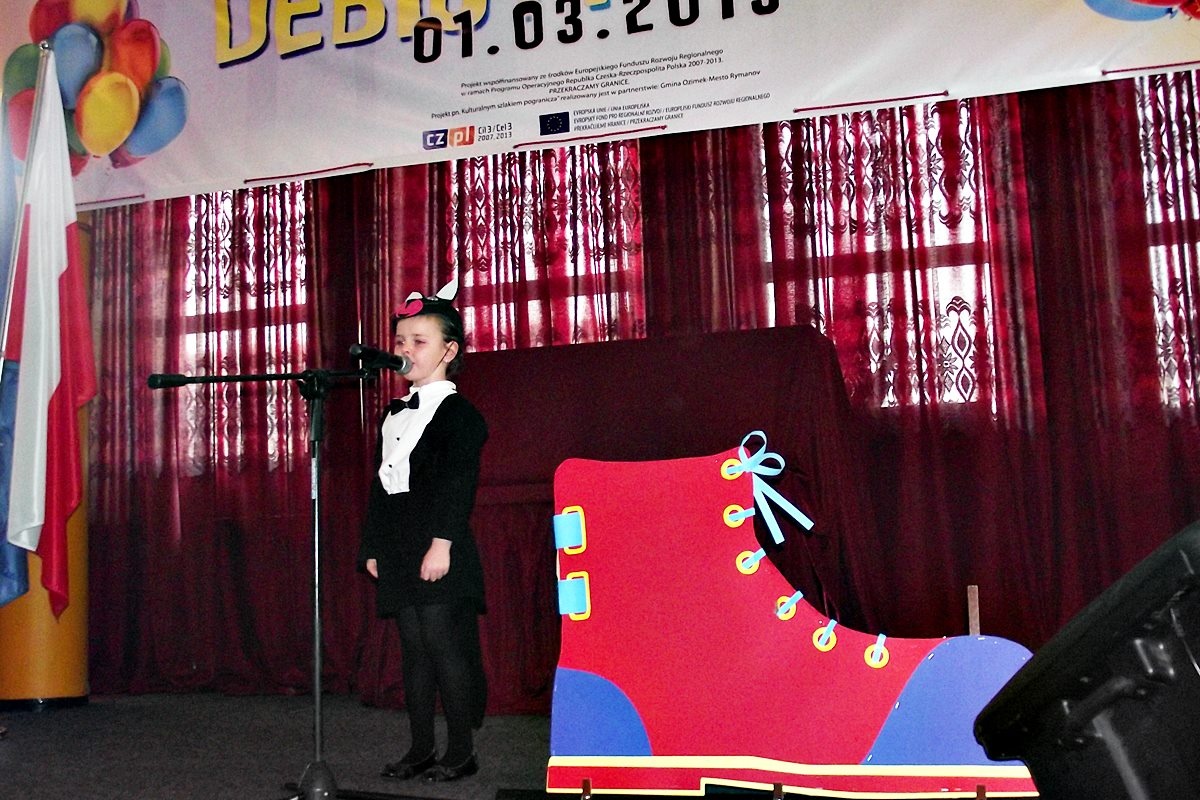 W dniu 1 marca br. w Domu Kultury w Ozimku miało miejsce wydarzenie pn. „Debiuty dzieci”, współfinansowane przez Unię Europejską ze środków Europejskiego Funduszu Rozwoju Regionalnego w ramach Programu Operacyjnego Współpracy Transgranicznej Republika Czeska-Rzeczpospolita Polska 2007-2013. PRZEKRACZAMY GRANICE.