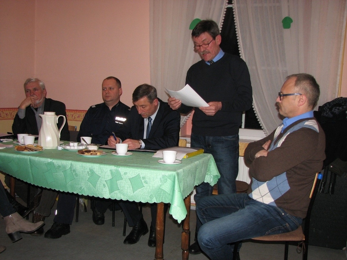 W okresie minionej kadencji sołectwo otrzymało z Urzędu Gminy i Miasta ok. 60 tys. zł, które wykorzystano na prace przy budynku świetlicy i budynku gospodarczym, kaplicy i jej otoczeniu, wyposażenie świetlicy w potrzebne sprzęty, zakup namiotu festynowego, wyłożenie kostką brukową placu pod namiot i inne, a także organizację imprez wiejskich: festynów rodzinnych, dożynek, imprez mikołajowych dla dzieci oraz wigilii dla osób starszych i samotnych. mieszkańców. Sołtys podziękował członkom Rady Sołeckiej i innym osobom angażującym się w prace na rzecz wsi oraz Kołu DFK, Stowarzyszeniu Rozwoju Wsi Chobie, a także burmistrzowi i jego służbom za dobrą współpracę. W dyskusji zabierali głos zaproszeni goście: dzielnicowy sierż. szt. Grzegorz Musiał, prezes Miejsko-Gminnej Spółki Wodnej Jan Grabowski oraz burmistrz Jan Labus, który odpowiadał na zadawane przez mieszkańców pytania. W przeprowadzonych tajnych wyborach, spośród dwojga zgłoszonych kandydatów, sołtysem został wybrany ponownie Ryszard Reimann, który otrzymał zdecydowaną większość głosów. W skład 5-osobowej Rady Sołeckiej zostali wybrani: Andrzej Kuzior, Karina Elisch, Norbert Spyra, Sylwia Kuzior i Marzena Sowa.
