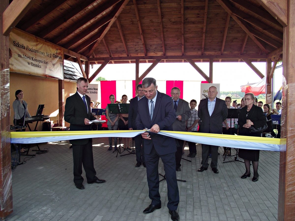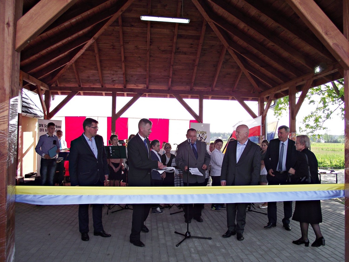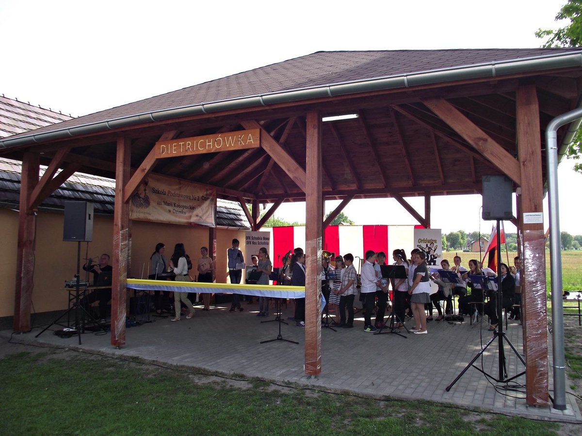 Całość rozpoczęła się uroczystą Mszą Świętą w intencji żywych i zmarłych członków i działaczy DFK Nowa Schodnia oraz wieloletniego społecznika Horsta Dietricha, inicjatora powstania miejsca spotkań. Następnie przy dźwiękach orkiestry dętej goście i uczestnicy przemaszerowali na boisko szkolne, gdzie miał miejsce ciąg dalszy festynu. Gospodarz miejsca Dyrektor SP Nr 2 Ozimku, pan Wiesław Miś rozpoczął uroczystości, witając przybyłych gości, po czym przedstawił sylwetkę i działalność pana Horsta Dietricha. Po przemówieniu ksiądz proboszcz poświęcił wiatę a pani Maria Dietrich wraz z byłym i obecnym Burmistrzem Ozimka oraz Przewodniczącym Rady Miejskiej przecięli wstęgę, oddając jednocześnie to miejsce do dyspozycji mieszkańcom Nowej Schodni.