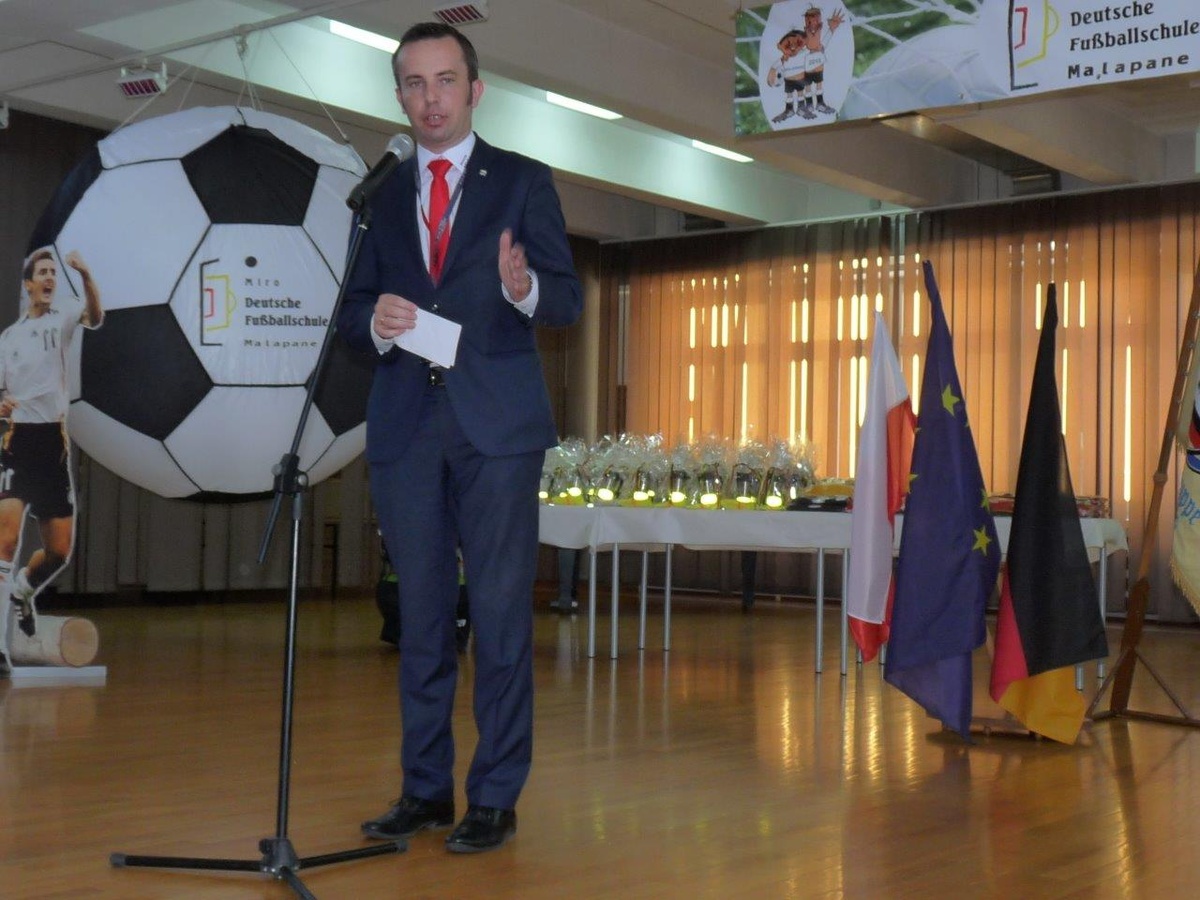 Po odśpiewaniu hymnu MN i oficjalnym przywitaniu gości przez Przewodniczącego M-G Zarządu TSKN Klausa Leschika oddano głos dostojnym gościom. Nasz włodarz Jan Labus skierował serdeczne słowa uznania do organizatorów oraz życzył dzieciom wielu sukcesów i rozwijania talentów. Podczas oficjalnej części przemówili również min. Rafał Bartek nowy szef TSKN w Opolu, Wiesław Korek Wiceprezes OZPN, Wicestarosta Opolski Leonarda Płoszaj, Bernard Gaida Przewodniczący ZNSSK oraz goście z Niemiec Claus Thies, Przewodniczący „Brücke Oberschlesien” i Christian Schmidt z Instytutu Goethego w Krakowie.