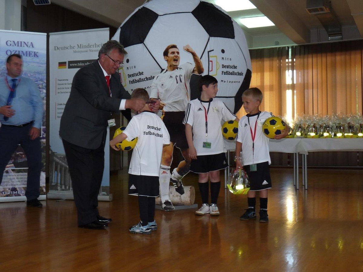Najważniejszym punktem uroczystości było wręczenie młodym gwiazdom legitymacji oraz drobnych upominków. Zaszczyt wręczania miał Heinrich Nyolt pomysłodawca niemieckojęzycznych szkółek piłkarskich. Po oficjalnej ceremonii zaproszono wszystkich do wspólnego zdjęcia.