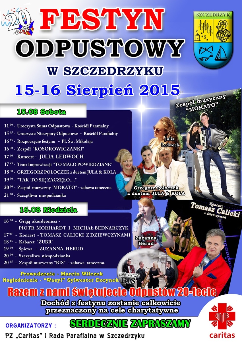 Serdecznie zapraszamy na FESTYN ODPUSTOWY W SZCZEDRZYKU, który odbędzie się w dniach 15-16 sierpnia 2015 r. na placu festynowym w Szczedrzyku.