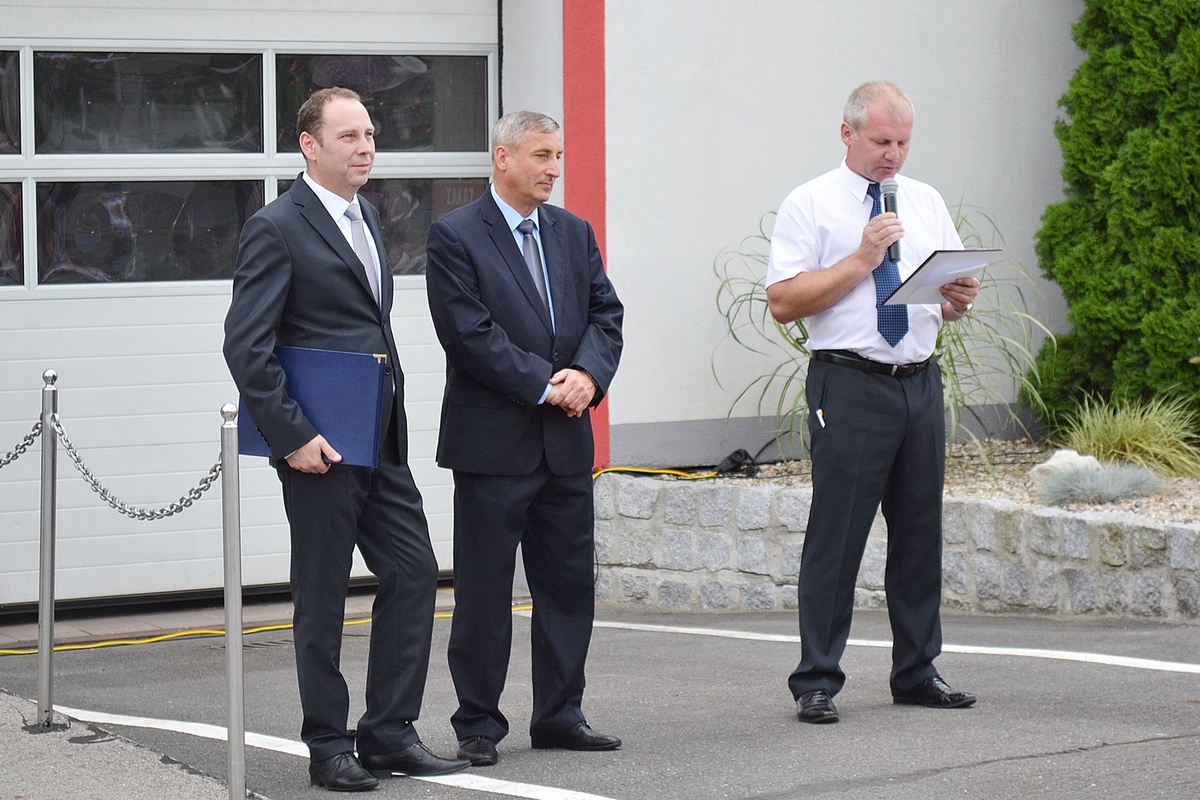 Na zakończenie części oficjalnej głos zabrali także burmistrz Ozimka, który wręczył pamiątkową paterę oraz bukiet p. sołtys, życzył mieszkańcom udanych uroczystości, jak również kolejnych doniosłych jubileuszy. Życzenia w j. niemieckim przekazał również przewodniczący TSKN Ozimek Klaus Leschik.