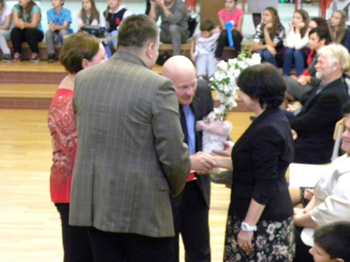 W uroczystościach uczestniczyli między innymi przewodniczący Rady Miejskiej Krzysztof Kleszcz oraz zastępca burmistrza Jarosław Wita, który w imieniu swoim oraz burmistrza Jana Labusa pogratulował wszystkim uczniom i nauczycielom, życząc im przy okazji dalszych sukcesów. Swoimi wspomnieniami z dwudziestoletniej pracy w placówce podzieliła się wicestarosta powiatu opolskiego Leonarda Płoszaj. Młodzież zaprezentowała się w programie artystycznym, ale uroczystościom towarzyszyły równiez różne gry i zabawy, prezentacje dorobku szkolnego. Aula szkolna pękała w szwach, gdyz została wypełniona byłymi i obecnymi pracownikami oraz absolwentami placówki.