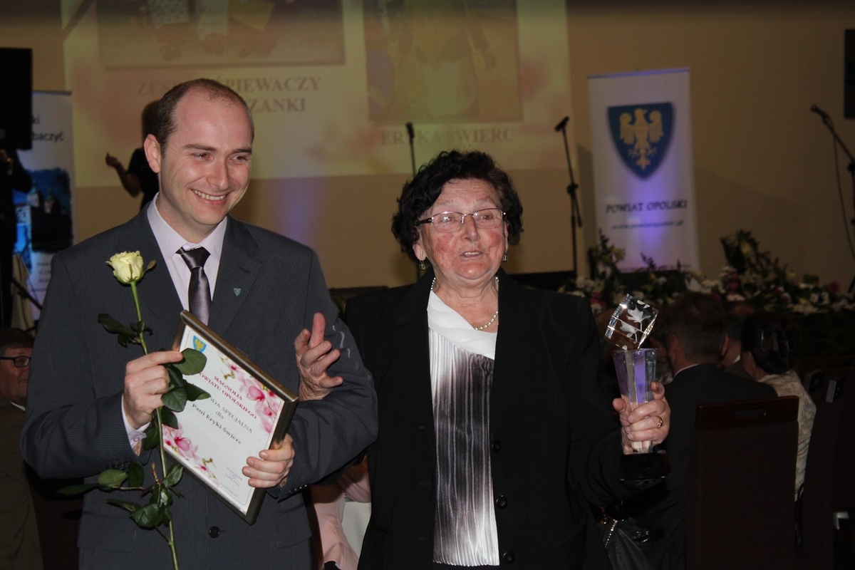 Nagrodę specjalną starosty opolskiego otrzymała Eryka Świerc, założycielka i do niedawna kierowniczka Zespołu „Dzióbki” z Biestrzynnika działającego przy DK w Ozimku. Przypominamy, że p. Eryka za aktywną wieloletnią kulturotwórczą działalność na rzecz amatorskiego ruchu artystycznego i upowszechniania folkloru na Opolszczyźnie została uhonorowana licznymi nagrodami i odznaczeniami. Na uroczystej Sesji Rady Miejskiej w Ozimku w dniu 26 czerwca 2010 r. nadano jej tytuł honorowy „Zasłużony dla Gminy Ozimek”.
