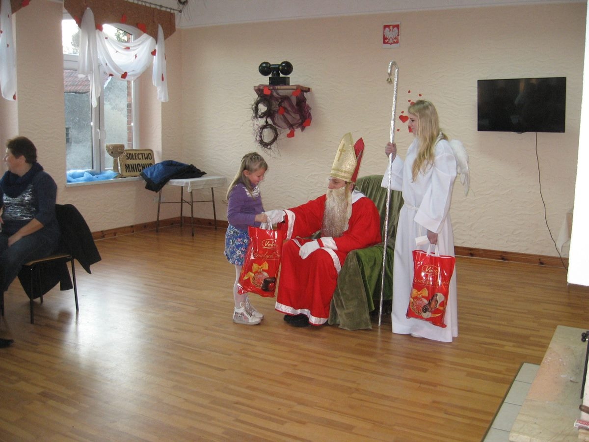 Jak co roku św. Mikołaj odwiedził również wszystkie grzeczne dzieci w Mnichusie. Spotkanie zorganizowano 6 grudnia, w świetlicy wiejskiej. Również w tym roku w przybyło dużo dzieci, a prawie wszystkim towarzyszyli ich rodzice.