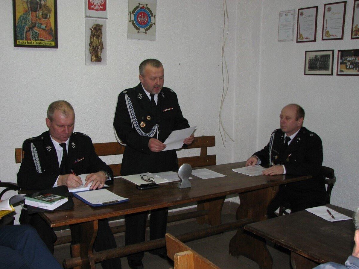 Uczestniczący w zebraniu goście: burmistrz Jan Labus, inspektor Zbigniew Koziarz i prezes Zarządu Gminnego Związku OSP RP Marek Elis złożyli strażakom podziękowania za służenie swojej wiosce i dobrą współpracę, życząc dalszego rozwoju i szczęśliwych powrotów z każdej akcji. Wybrano Zarząd i Komisję Rewizyjną na nową kadencję. Prezesem został ponownie Waldemar Konieczko, wiceprezesem i naczelnikiem Adrian Szczygieł, zastępcą naczelnika Manfred Mazur, sekretarzem Łukasz Niedziela i skarbnikiem Mariusz Szczygieł. Do Komisji Rewizyjnej weszli: Hubert Niesłony - przewodniczący, Sebastian Kansy - sekretarz i Krzysztof Paturej - członek. Na przedstawicieli do Zarządu Gminnego i delegatów na Zjazd Gminny wybrano prezesa i wiceprezesa jednostki.