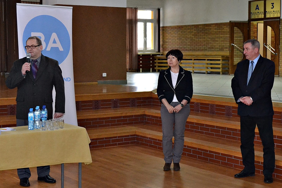 15 marca br. zorganizowano spotkanie pracodawców z uczniami, które odbyło się na auli GZS w Ozimku. Ok. 150 uczestników – uczniów klas trzecich gimnazjum GZS oraz klas zawodowych z ZS w Ozimku przywitali burmistrz Ozimka Jan Labus, z-ca dyrektora GZS Krystyna Zabawa i dyrektor ZS Dariusz Bigas.
