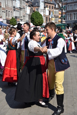 Program Europeade był również bardzo intensywny. Środowy wieczór należał do grup regionalnych z Belgii, na Plac Maurice Servais podziwialiśmy walońskie grupy taneczne, tradycyjną grupę biegaczy na szczudłach, żołnierzy w historycznym umundurowaniu wraz z bronią, mnóstwo radosnej muzyki i historii. Na moście nad Sambre i Maas podziwialiśmy niesamowity spektakl światła i ognia. Czwartek przywitał nas przepiękną pogodą, o 10.00 – pierwszy niesamowity wspólny występ wraz z innymi śląskimi grupami z Niemiec ( 80 osób na jednej scenie!) - na Plac d'Ange zaprezentowaliśmy licznie zgromadzonej publiczności nasze piękne stroje oraz tańce. Publiczność odwdzięczyła się gromkimi oklaskami i okrzykami, prosząc o bisy!Zaraz po nim drugi występ już w mniejszym gronie, bo tylko z zespołem Fröhlicher Kreis – również bardzo oklaskiwany przez publiczność. Po nim krótka przerwa, obiad i znowu w strojach wyruszyliśmy na wieczorną uroczystość otwarcia Festiwalu, na której obecna była m. in. księżna Astrid z belgijskiego domu królewskiego.