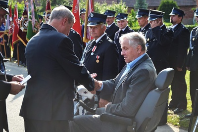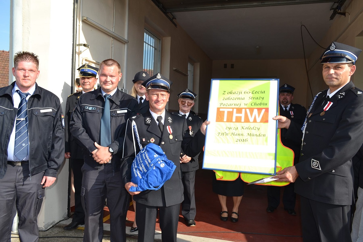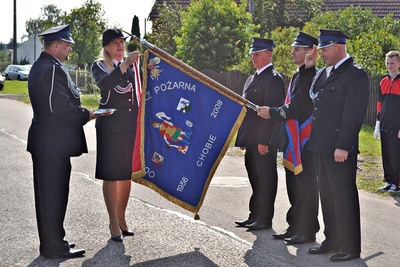 Po uroczystej mszy św., którą odprawili ks. proboszcz Zbigniew Banaś i były mieszkaniec wsi Chobie ks. Gerhard Fuhl, nastąpiła część oficjalna, podczas której po przywitaniu wszystkich gości odznaczono strażaków z Chobia za szczególne osiągnięcia dla pożarnictwa. Jednostkę OSP Chobie odznaczono Srebrnym Medalem za zasługi dla pożarnictwa. Ponadto należy wyróżnić odznaczenie za wysługę 60 lat w OSP dla Emila Tomy oraz dla Gerarda Koja.