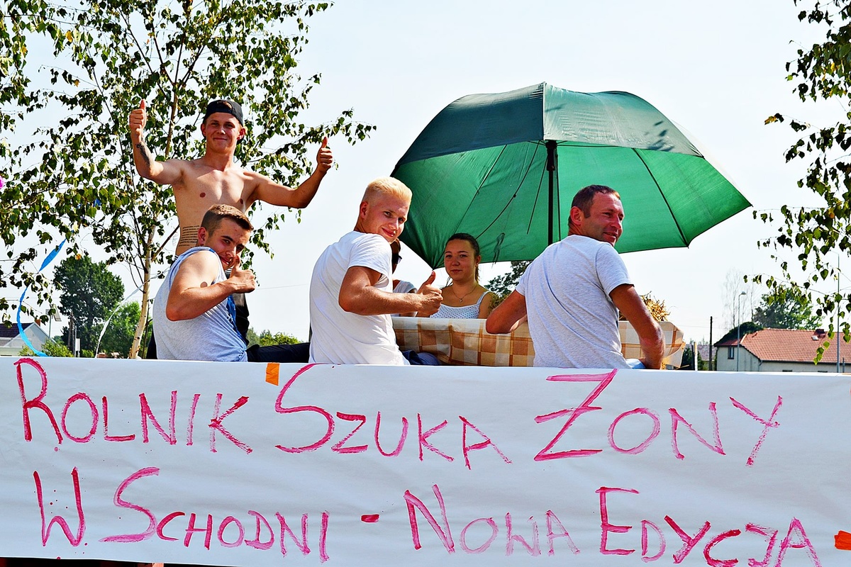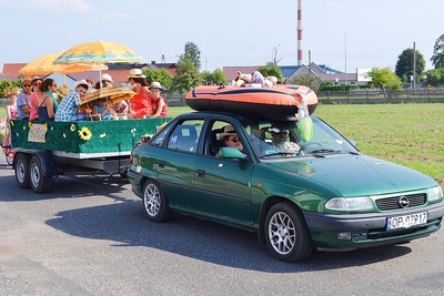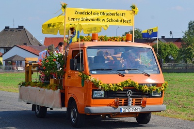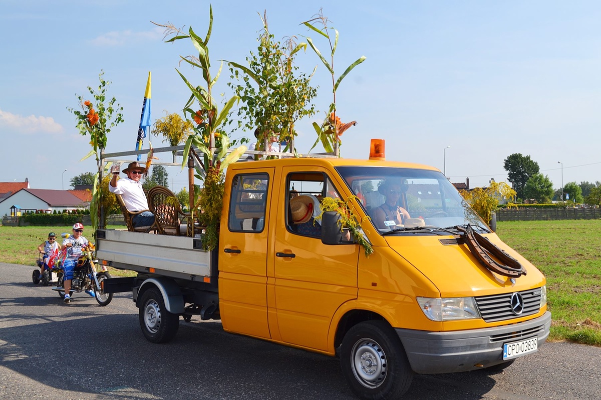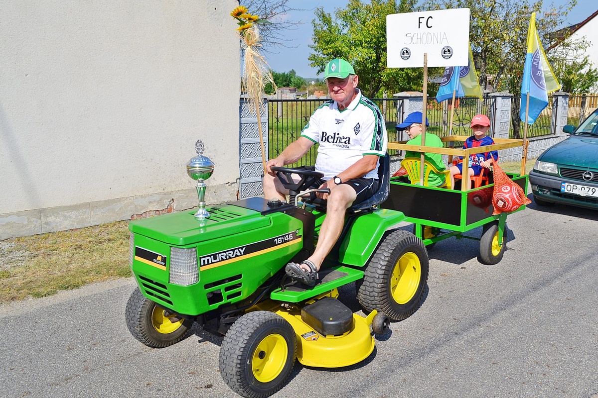Jak co roku o godz. 14:00 zebrał się barwny korowód, który przemieścił się ulicami sołectwa. Udział wzięły pojazdy zmechanizowane, piesi i rowerzyści, którzy zaprezentowali ciekawe pomysły – była Niemieckojęzyczna Drużyna Piłkarska ze Schodni i Klub FC Schodnia, Wóz Wczasowiczów, Hawajskie Rowerzystki, Pan Taksówka, Grupa Rowerowo-Motorowa, Ekipa z Oktoberfestu, Cowboyscy Rolnicy, Grupa z Programu Rolnik Szuka Żony, Barwny Wóz z Fredem na czele oraz naturalnie najważniejszy pojazd, który transportował koronę żniwną. O bezpieczeństwo korowodu zadbali strażacy z jednostki OSP Schodnia.