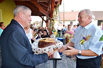 Punktem kulminacyjnym był uroczysty akt przekazania chleba dożynkowego włodarzowi gminy przez starostów dożynek Erykę i Jerzego Korzyniec, który pobłogosławił ks. proboszcz J. Bejnar. Burmistrz zgodnie z tradycją sprawiedliwie podzielił go wśród zebranych – jako symbol, aby nigdy nikomu go nie zbrakło. Po części oficjalnej zaproszono wszystkich na kołacz śląski oraz drobny poczęstunek. Zaś dla dzieci przygotowano darmową zabawę na dmuchańcach.