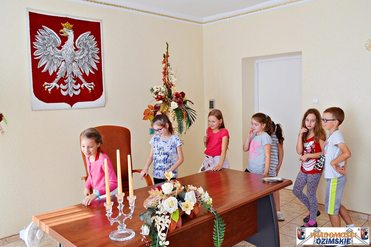 Dzieci odwiedziły m.in. Zastępcę Burmistrza Jarosława Witę, zobaczyły salę narad – gdzie zasiada Rada Miejska w Ozimku, poznały Honorowych i Zasłużonych Obywateli Gminy Ozimek, jak również miasta partnerskie.
