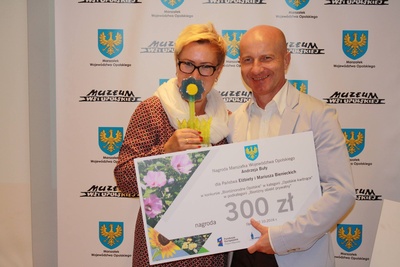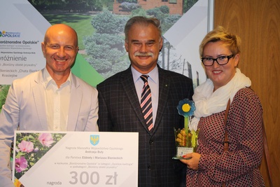 Laureaci otrzymali bony na zakup narzędzi i materiałów ogrodniczych Państwo Wajrach za I miejsce – 3000 zł, a Państwo Bienieccy za wyróżnienie – 300 zł. Nagrody wręczył Wicemarszałek Stanisław Rakoczy.