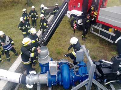 Nasi strażacy ćwiczyli również na terenie „basenu” pomagając w akcji ratunkowo-poszukiwawczej.