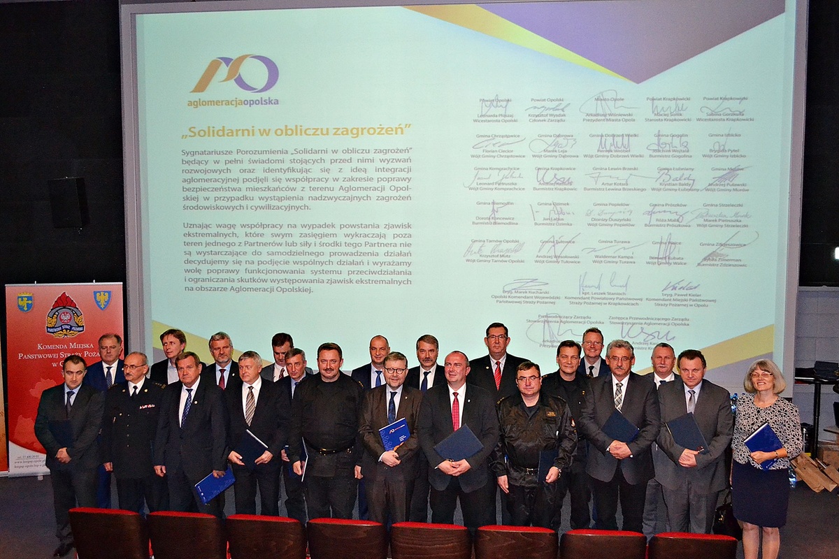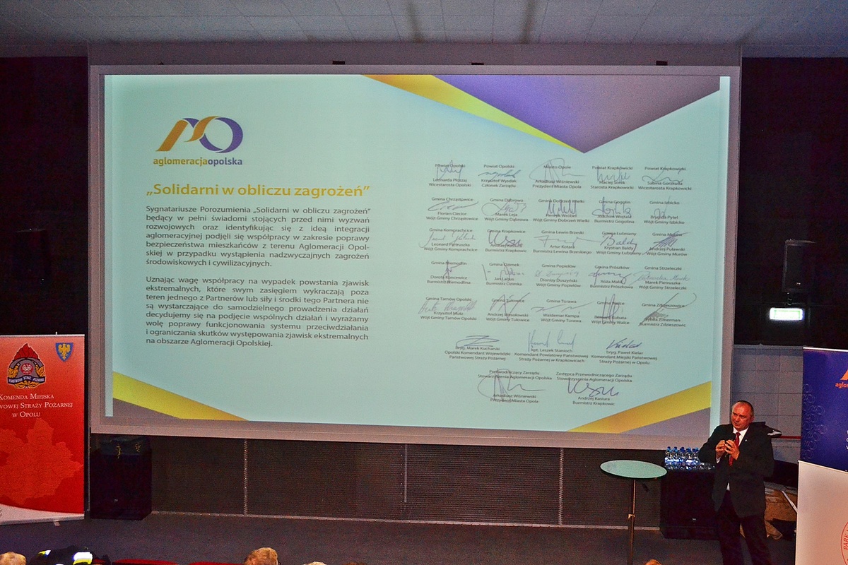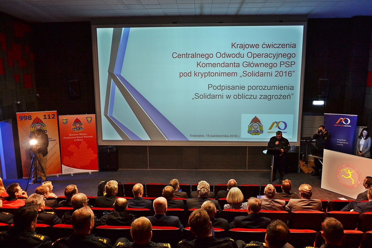 Wczoraj na terenie powiatu opolskiego, w tym Gminy Ozimek rozpoczęły się dwudniowe ćwiczenia strażackie „Solidarni 2016”, wieczorem w Parku Nauki i Rozrywki w Krasiejowie spotkali się przedstawiciele gmin stowarzyszenia Aglomeracja Opolska oraz władz strażackich by oficjalnie przedstawić unikatowe na skalę kraju porozumienia „Solidarni w obliczu zagrożeń”, które podpisało 21 gmin, dwa powiaty, trzy komendy strażackie i AO.