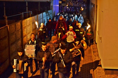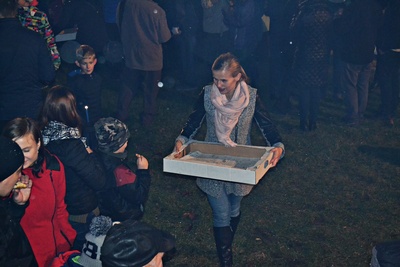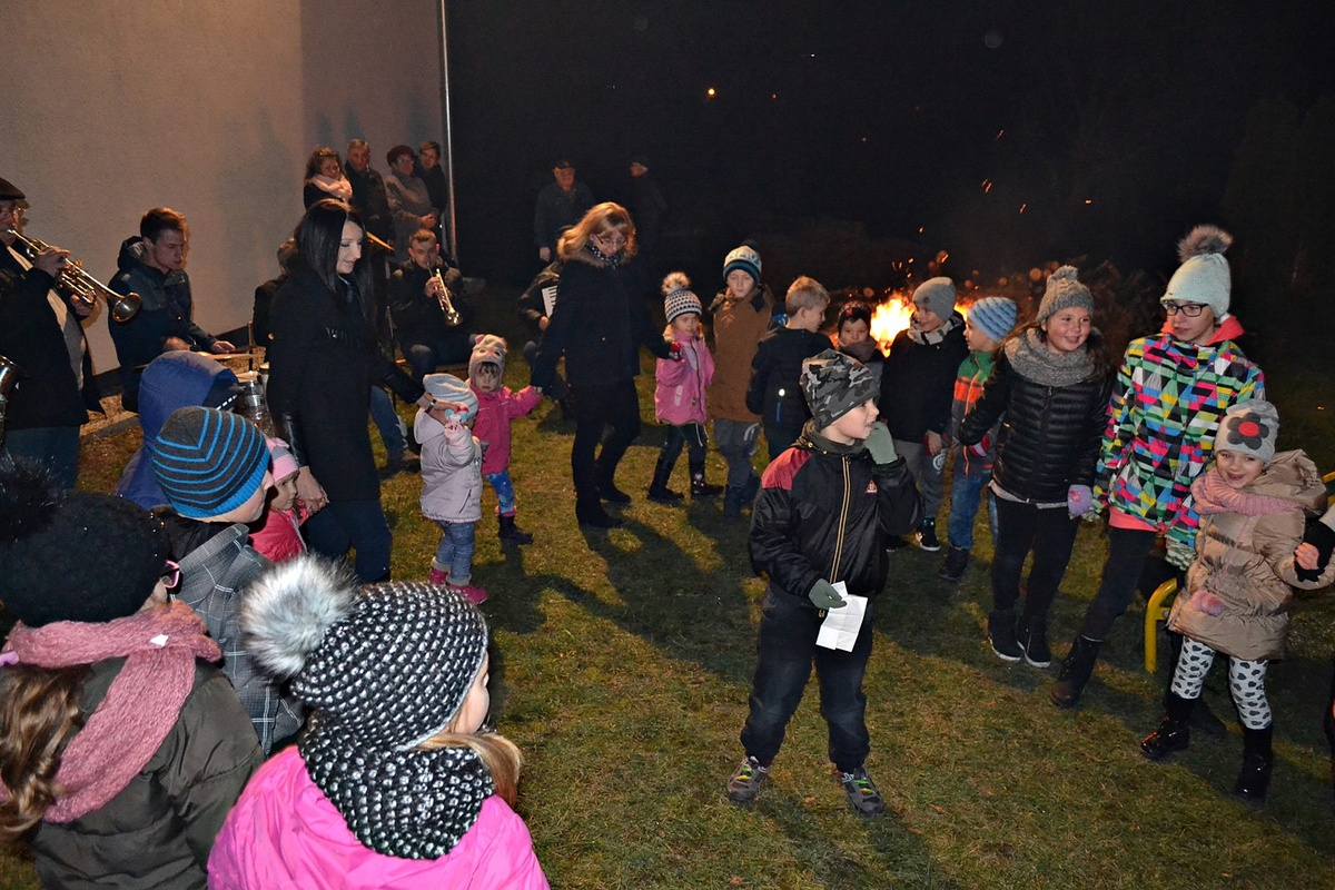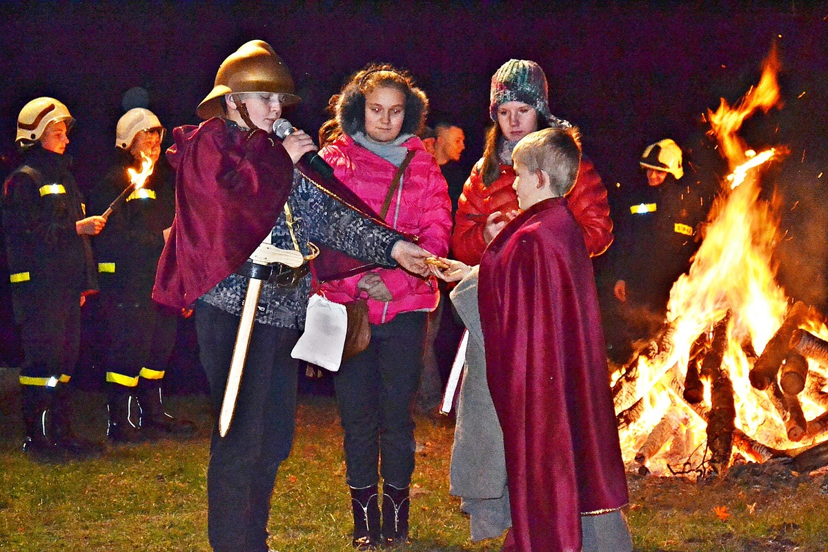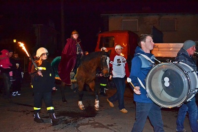 Dla wszystkich uczestników przygotowano także rogale świętomarcińskie i ciepłe napoje. O muzyczną atmosferę zadbała orkiestra, zaś dla najmłodszych przygotowano zabawy i słodycze. Impreza była bardzo udana, a udział wzięło ponad 100 osób, wśród których był również burmistrz Jan Labus. Szczególnie cieszy, że w Schodni uroczystości organizują wspólnie DFK, Sołtys i Rada Sołecka, parafia i OSP.