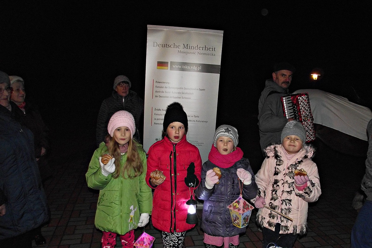 O godzinie 16.00 korowód dzieci z lampionami wyruszył sprzed szkoły, udając się na „Osiedle Zielone”, a drodze powrotnej na plac przy remizie strażackiej, gdzie przy rozpalonym ognisku odtworzono scenę spotkania Marcina z żebrakiem oraz rozdano wszystkim tradycyjne rogaliki. Dzieci wystąpiły z programem artystycznym, śpiewając piosenki po polsku i po niemiecku. Z okolicznościowym programem wystąpił również zespół „Opolskie Dziołchy”. Konia dla św. Marcina użyczył Adrian Kokot z Antoniowa.