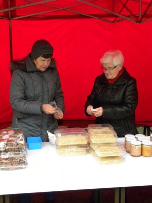 To już tradycja: miesiąc przed Wigilią w Szczedrzyku miejscowy Caritas organizuje wielki kiermasz. Tak też było 27 listopada, gdy koło kościoła rozlokowało się stoisko między innymi z różnymi specjałami domowej roboty - nie zabrakło makaronu, smalcu ze skwarkami, pierniczków i inynych smakołyków. Niektórzy goście wspierali handlujące panie nawet nie kupując - po prostu przekazywali pieniądze, kltóre przecież przeznaczone zostaną na szczytny cel. I wprawdzie akcji momentami nie sprzyjała pogoda, bo chwilami po prostu lało, to jednak już w południe stoisko zaczynało świecić pustkami.