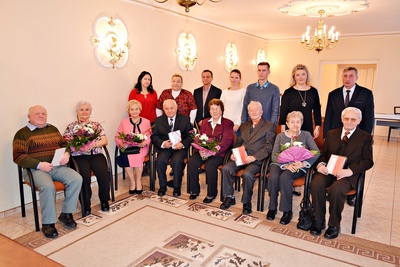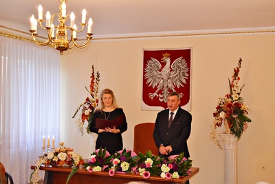 Życzenia i gratulacje złożyli im burmistrz Jan Labus i Kierownik USC Ewa Bronder.