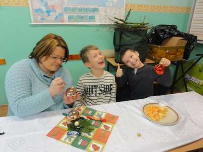 Z tej okazji wszyscy ozdabiali bombki, wykonywali łańcuchy oraz wycinali i kleili Mikołaje, które potem zawisły na specjalnie dla Samstagskursu przygotowanej pięknej, ogromnej choince. Rodzice wraz dziećmi wspólnie wykonali wiele kolęd oraz pieśni świątecznych w języku niemieckim - wzruszenie było ogromne, gdyż w dzisiejszych czasach właśnie dla takich wspólnych chwil często brakuje czasu w rodzinach.