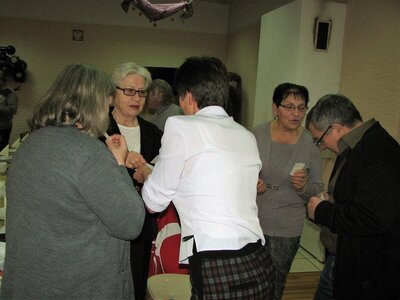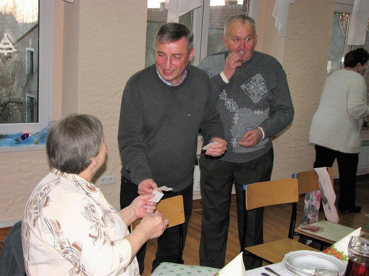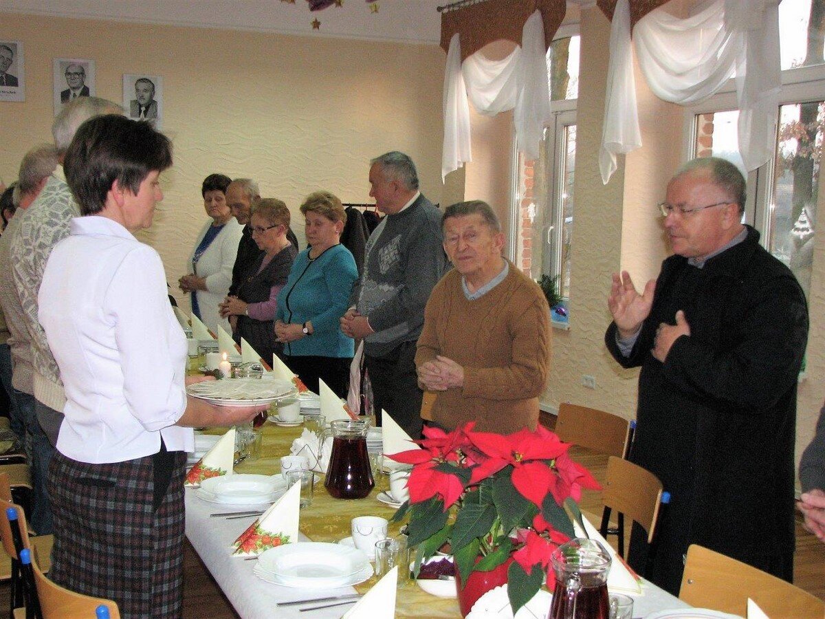Bożonarodzeniowe i noworoczne życzenia złożył im burmistrz Jan Labus, a wspólną modlitwę odmówili wraz z proboszczem parafii w Grodźcu ks. Zdzisławem Banasiem, który również pobłogosławił opłatki. Dzielono się nim wzajemnie podczas składania życzeń, po czym wszyscy zasiedli do tradycyjnej wigilijnej wieczerzy. Na zakończenie spotkania każdy jego uczestnik otrzymał prezent – paczuszkę z piernikami spod zdobiącej salę świątecznej choinki.
