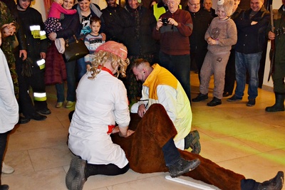 Wieczorem zaproszono wszystkie dzieci do wspólnej zabawy w barze „u Gedy”. Były gry i tańce oraz słodycze dla najmłodszych. Każdy mógł sobie zrobić także pamiątkowe zdjęcie z Berem. Na koniec tradycyjnie odstrzelono niedźwiedzia oraz pożegnano go aż do przyszłego roku. Po wszystkim zaproszono do wspólnej zabawy tanecznej.