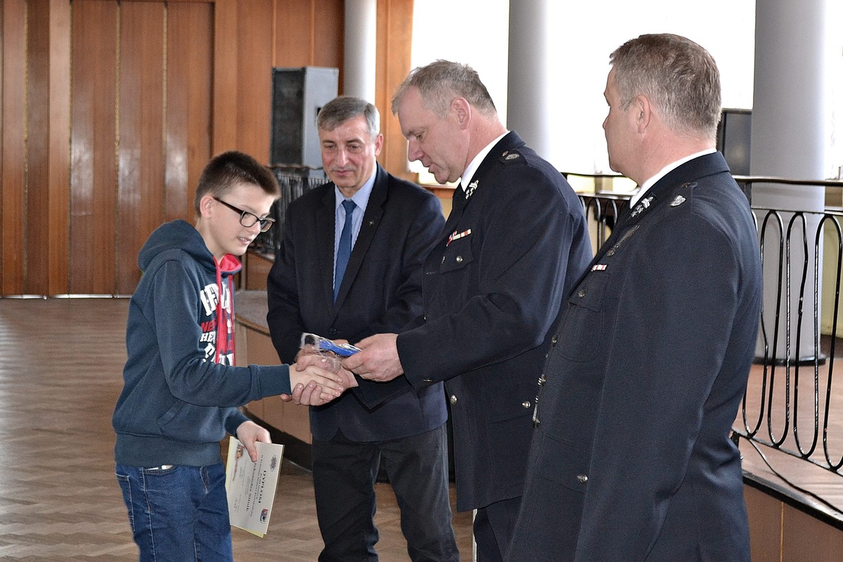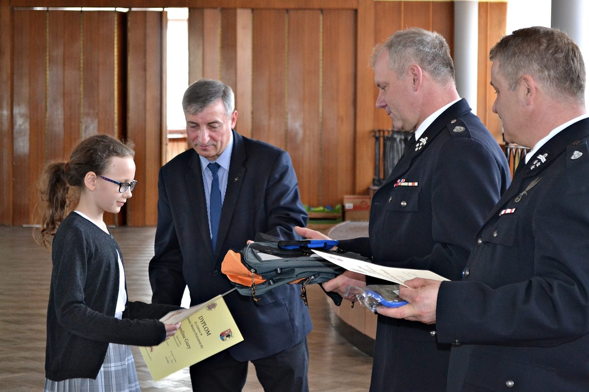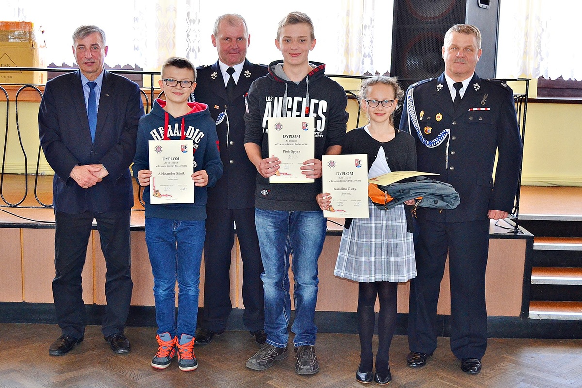 Pierwsze miejsce zajął Piotr Spyra uczeń SP Krasiejów, drugie Karolina Guzy uczennica PSP nr 1 w Ozimku, a trzecie Aleksander Sitnik z PSP Grodziec. Dyplomy oraz nagrody wręczyli burmistrz Jan Labus, Prezes Zarzadu M-G OSP RP w Ozimku Marek Elis oraz Komendant Gminny Andrzej Jakubiec.