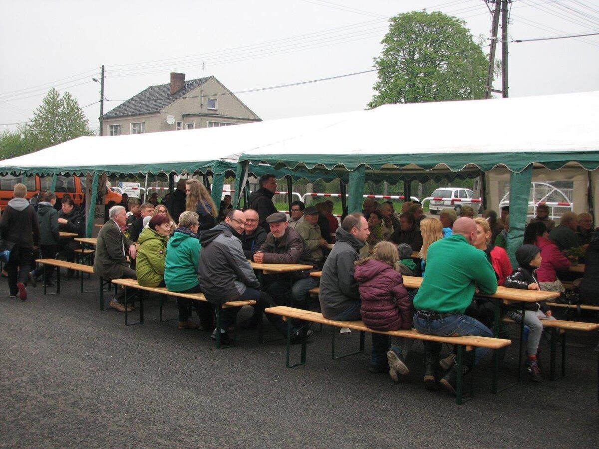 2 maja o godzinie 19.00, w ustawionym na placu obok kościoła namiocie, rozpoczęła się uroczystość stawiania majowego drzewka. Przybyłych na nią mieszkańców i gości, w tym burmistrza Ozimka Jana Labusa, powitał sołtys Mirosław Wieszołek i przewodniczący Rady Sołeckiej Krzysztof Wilczek. Zaprosili oni sponsorów do postawienia masztu z majowym drzewkiem na skwerku obok remizy OSP, a następnie na fundowany przez nich poczęstunek. Do wspólnego biesiadowania przygrywała Orkiestra Dęta Szczedrzyk, a przed zmrokiem wystąpili mali tancerze z Klubu Miłośników Tańca Towarzyskiego „Alvaro” Zebrali oni gorące brawa od publiczności, a biesiada trwała do późnego wieczora.