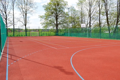 Inwestycja obejmowała budowę boiska wielofunkcyjnego o nawierzchni poliuretanowo - gumowej o wymiarach 20,0 m x 40,0 m, z przeznaczeniem do gry w koszykówkę, siatkówkę, tenisa ziemnego i kometkę. Boisko wyposażono w stojaki koszy do koszykówki, bramki do piłki ręcznej oraz słupki do gry w tenisa ziemnego. W ramach prac utwardzono także teren ościenny kostką brukową a całość ogrodzono piłkochwytami.
