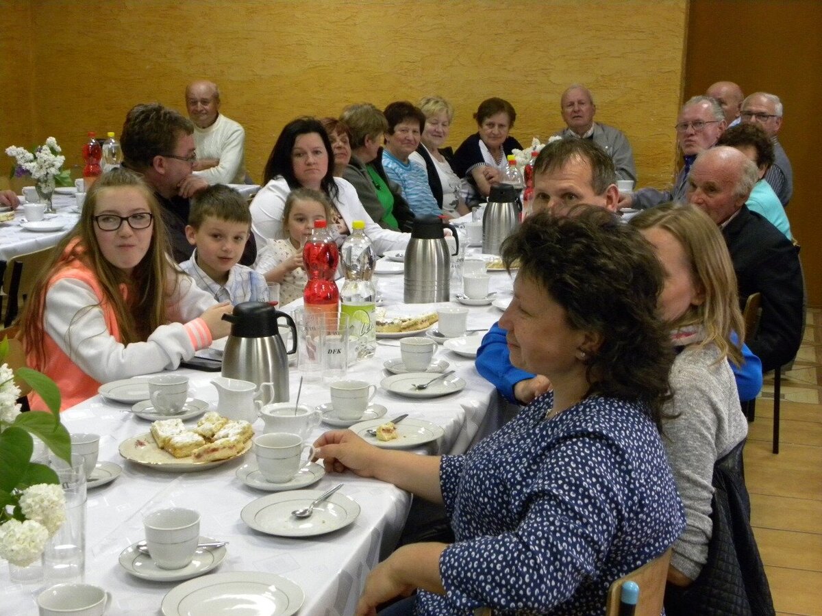 Na spotkanie zaproszono wszystkie chętne mamy i tatusiów, którym życzenia z okazji ich święta złożyli: przewodniczący DFK Klaus Leschik, sołtys Mirosław Wieszołek i burmistrz Ozimka Jan Labus. Dla swoich rodziców wystąpiły dzieci ze Szkoły Podstawowej w Szczedrzyku pod opieką Izabelli Grys, przedstawiając program złożony z piosenek i wierszy wykonywanych po polsku i po niemiecku. Do wspólnej biesiady przy kołaczu i kawie przygrywał DJ Denis.