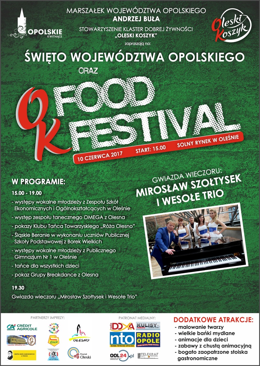 Na Święto Województwa Opolskiego oraz OK Food Festival, które odbędą się w dniu 10 czerwca 2017r. w Oleśnie. Szczegółowy program w załączeniu.