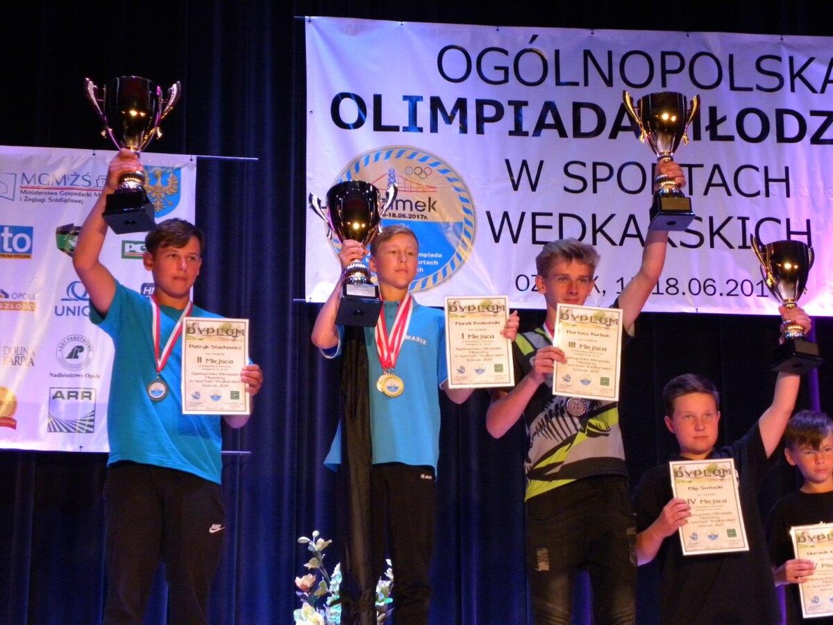 W niedzielę przed południem w Domu Kultury w Ozimku odbyło się uroczyste wręczenie medali, pucharów i nagród oraz oficjalne zamknięcie Olimpiady. Nagrodzono najlepszych w trzech kategoriach wiekowych: U12, U14 i U16 i czterech rozegranych konkurencjach, jak również w klasyfikacji generalnej. To najważniejsze zwycięstwo odniosła drużyna Okręgu Opolskiego PZW, którą tworzyło dwóch zawodników z Ozimka: Dawid Sudoł i Marek Kwieciński oraz Jakub Surmiak z Prudnika. Dawid Sudoł zajął piąte miejsce w kategorii do 12 lat, Marek Kwieciński zwyciężył w kategorii do 14 lat, zdobywając zarazem tytuł MVP (najlepszego zawodnika Olimpiady), a Jakub Surmiak był drugi w kategorii do lat 16. Serdecznie gratulujemy drużynie i jej trenerom, a organizatorom Olimpiady – przygotowania i przeprowadzenia ogólnopolskiej imprezy na bardzo wysokim poziomie.