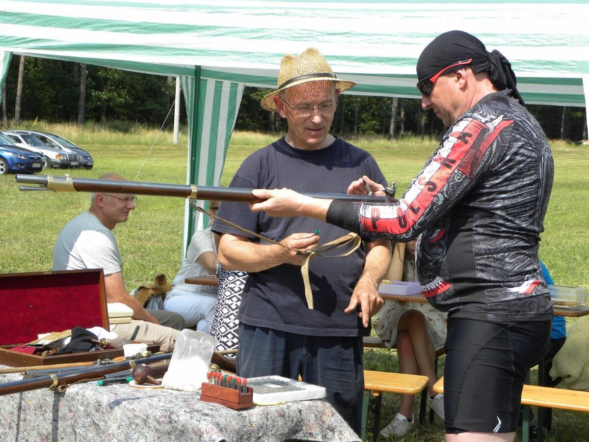 Zanim rozpoczęto strzelanie, prezes Stowarzyszenia Józef Tomasz Juros przypomniał historię produkcji karabinów w Ozimku i Krasiejowie. Powstawał tu pruski muszkiet Neupressisches Gewehr model 1809, w skrócie oznaczany jako M1809. Od marca 1809 do sierpnia 1814 roku, a więc w okresie około 5 lat, w Pruskiej Królewskiej Hucie Malapane wyprodukowano łącznie 15908 muszkietów, kilkaset karabinów różnego kalibru i ponad 3000 pistoletów. W 1815 r. produkcję karabinów przeniesiono do Krasiejowa, gdzie wytwarzano je jeszcze do roku 1851. Uczestnicy pikniku przekonali się, że niełatwo jest posługiwać się taką bronią i trafić kulą do tarczy oddalonej zaledwie o 25 metrów. Niemniej jednak zdarzyły się dwie „dziesiątki”. Jedną trafił członek Stowarzyszenia Krzysztof Matuszak, a drugą gość pikniku Leszek Wałowski. Gratulujemy.
