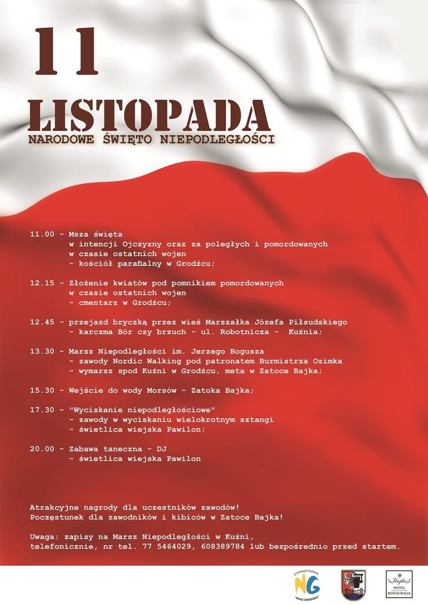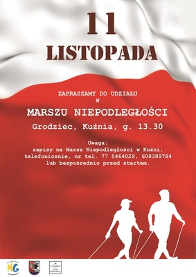 Uwaga: zapisy na Marsz Niepodległości w Kuźni, telefoniczne, nr tel. 77 54 64 029, 608 389 784 lub bezpośrednio przed startem.