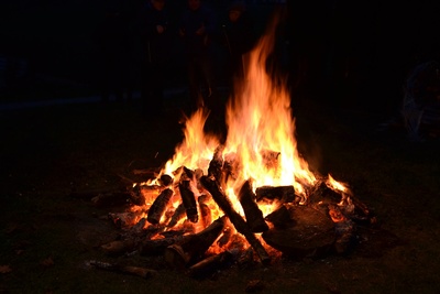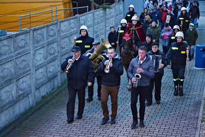 O bezpieczeństwo przy ognisku oraz podczas korowodu zadbali strażacy z OSP Schodnia, którzy niosąc pochodnie oświetlali drogę świętego.