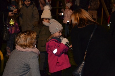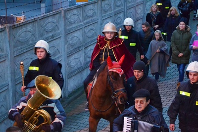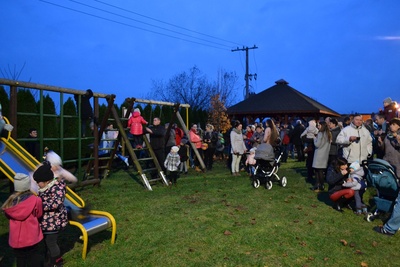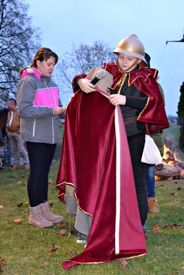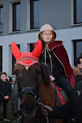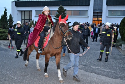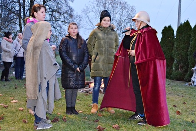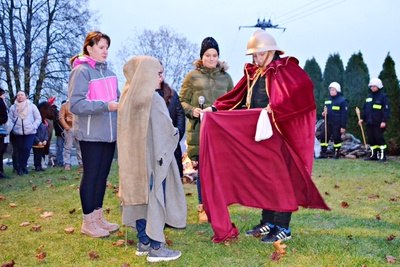 Następnie zebrani uformowali korowód i udali się na plac za remizą OSP, gdzie przygotowano tradycyjne ognisko. Orszak tworzyli św. Marcin, który jechał na koniu, a u jego boku szedł żebrak. Wśród uczestników były także dzieci z lampionami, które śpiewały pieśni ku czci świętego.